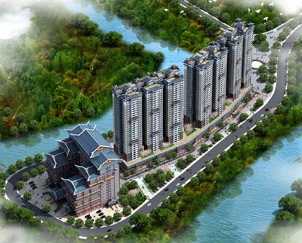[ 鶴峰華龍半島規(guī)劃·酒店及療養(yǎng)院效果圖 ]