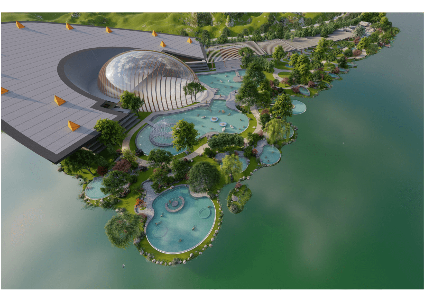 建筑規(guī)模 包含各類室外泡池25個,占地20.5畝;