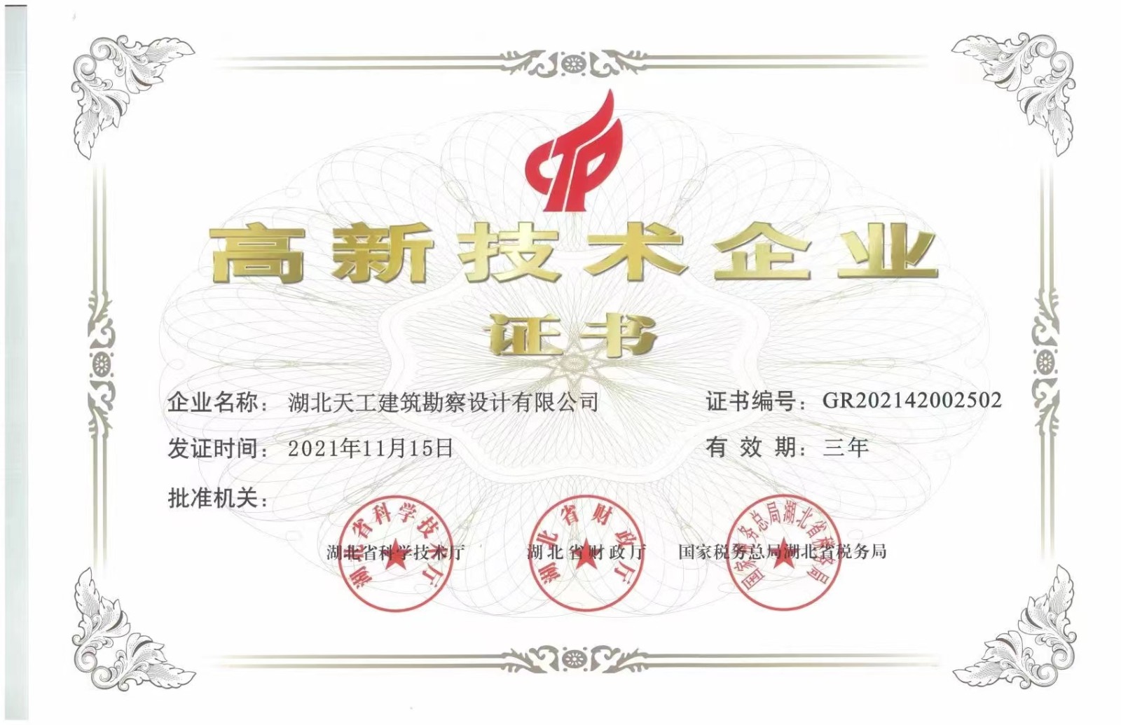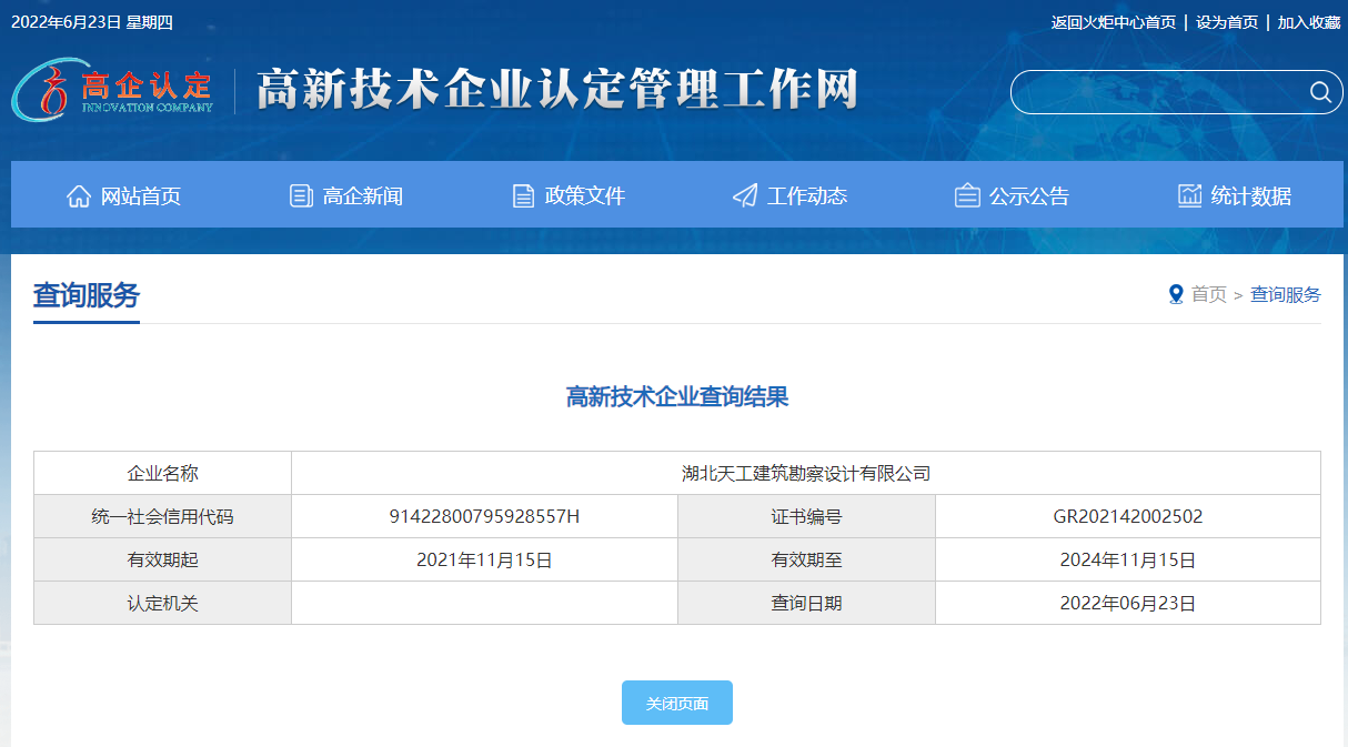 根據(jù)《高新技術(shù)企業(yè)認(rèn)定管理辦法》(國(guó)科發(fā)火〔2016〕32號(hào))和《高新技術(shù)企業(yè)認(rèn)定管理工作指引》(國(guó)科發(fā)火〔2016〕195號(hào))有關(guān)規(guī)定,湖北省公示了認(rèn)定高新技術(shù)企業(yè)名單,湖北天工建筑勘察設(shè)計(jì)有限公司(以下簡(jiǎn)稱“天工設(shè)計(jì)”)榜上有名,榮膺“國(guó)家高新技術(shù)企業(yè)”。