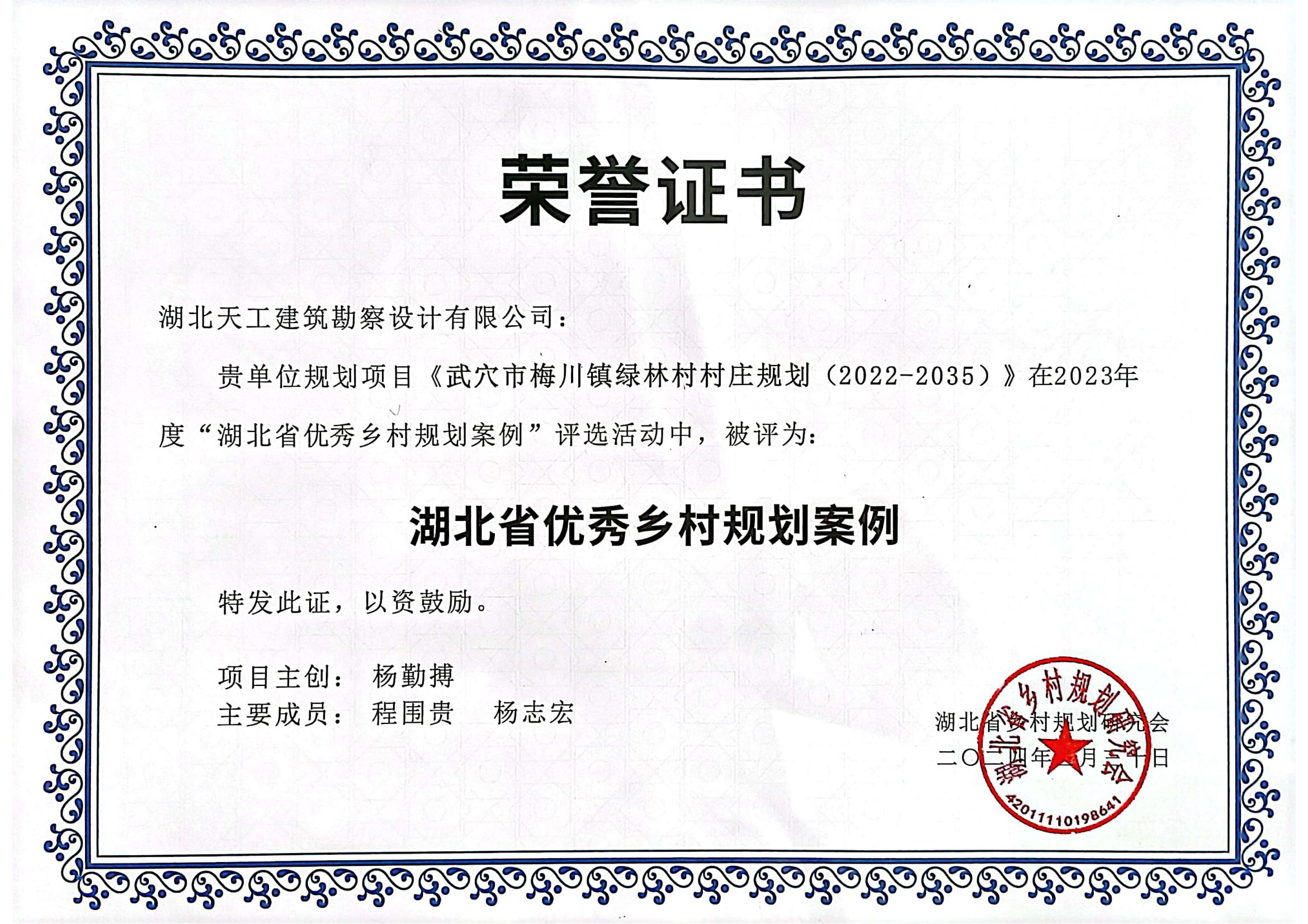 經過資料篩選、平臺推介、現場評審等環節,最終評選出5名鄉村規劃師和5個鄉村規劃案例,湖北天工建筑勘察設計有限公司完成的《武穴市梅川鎮綠林村村莊規劃(2022-2035)》在鄉村規劃案例中脫穎而出,榜上有名。此次評選的優秀鄉村規劃案例都具有較強的實踐性和代表性。