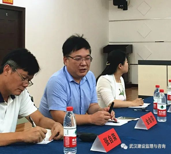 行業(yè)自治第四小組組長、中鐵武漢大橋工程咨詢監(jiān)理有限公司董事長張自榮,副會長夏明、馬真、蔡清明,秘書長陳凌云及秘書處馮梅、李國銘、陶英、嚴(yán)家運一同參加。華德萊集團(tuán)董事長金會容,武漢江城建設(shè)咨詢有限公司總經(jīng)理黃澤光及相關(guān)負(fù)責(zé)人,湖北天工建筑勘察設(shè)計院院長車誼及相關(guān)負(fù)責(zé)人參會。